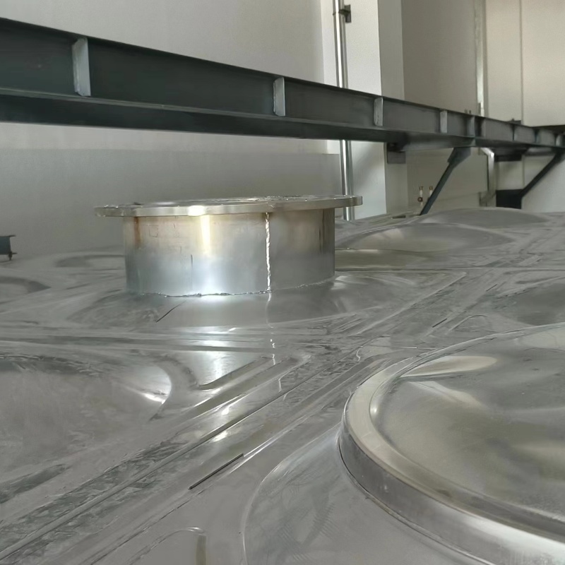 1.按照客戶提供的圖紙找(zhǎo)出進水、出水、溢流、排汙、氣孔的開口位置,畫上印作為標記,然後找準法蘭的角度與水箱板之間(jiān)的凸麵位置,放準為好,用鉛筆畫上印(yìn),在對準法蘭的螺栓口進行打孔.
