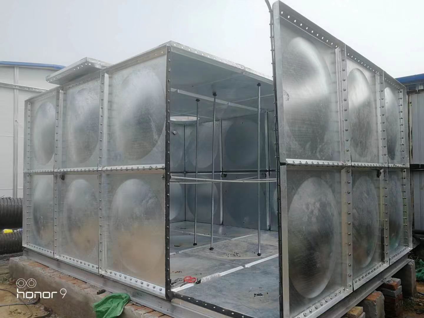 一、產品特(tè)點: 選材:91在线网站選用Q235邯鋼鋼板,使鍍(dù)鋅水箱的使用時間更久,並能較好防止水質的二次汙染。 結構:鍍(dù)鋅衝壓板及箱裏麵分布均勻的拉筋使箱體承壓均勻(yún)合理。 施工方便快捷:標準衝壓板塊1000*1000、1000*500、500*500mm隨意裝配現(xiàn)場組裝焊接,不需吊裝設備。 箱體輕盈美觀:沃迪衝壓工(gōng)藝,使鍍鋅水箱箱體較大限度的承壓(yā)需要,又(yòu)降低了材(cái)料厚度,滿足了箱體的美(měi)觀實用要求。